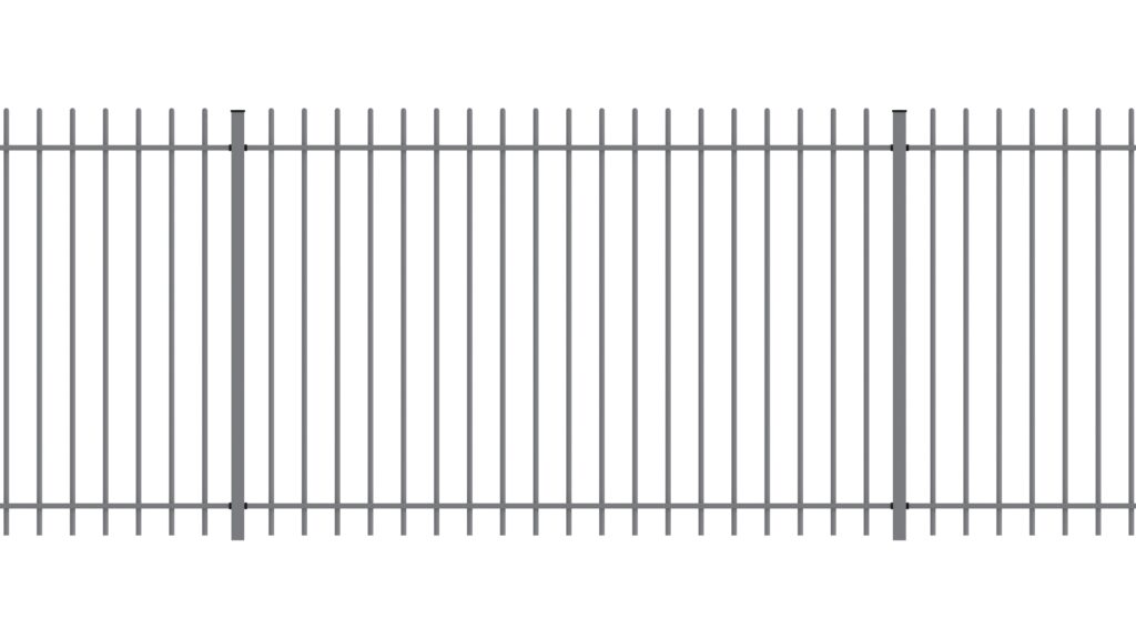 • Classic, functional steel fencing with round bars between the beams. The bar panels consist of vertical, round bars placed between the horizontal beams.