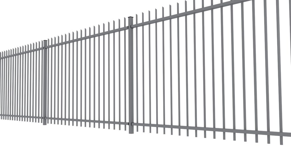 The bar fencing is constructed from bar panels that are blind-mounted to the posts, ensuring a seamless and secure connection.