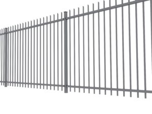 • Vandalism-resistant steel fencing with square, penetrating bars. The bar panels consist of vertical, round bars that penetrate the horizontal beams.